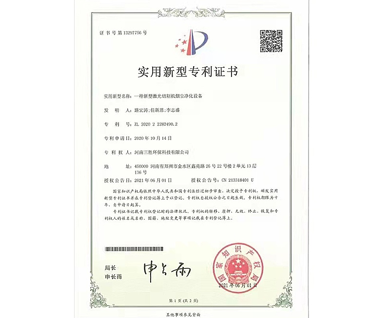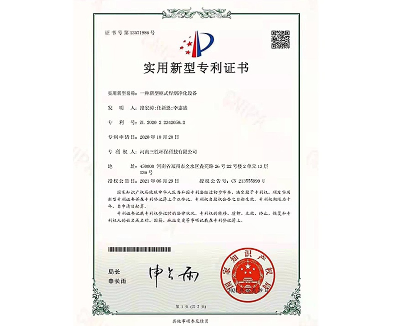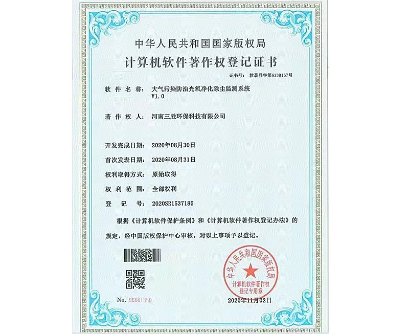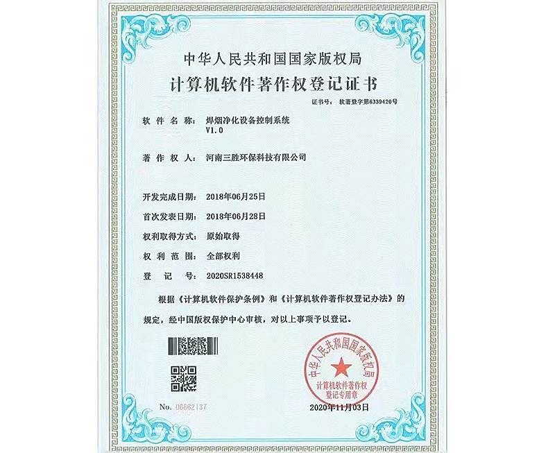 焊煙凈化設(shè)備控制系統(tǒng)證書